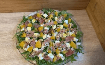 Sałatka wykwintna z pomarańczą to istna królowa jesienno-zimowych imprez w sezonie cytrusowym. Szybka i prosta w przygotowaniu. Prezentuje się i smakuje wykwintnie :). Idealna przekąska lub kolacja która urozmaici niejedno spotkanie towarzyskie jak i na Świąteczny bądź sylwestrowy stół. Polecam !.