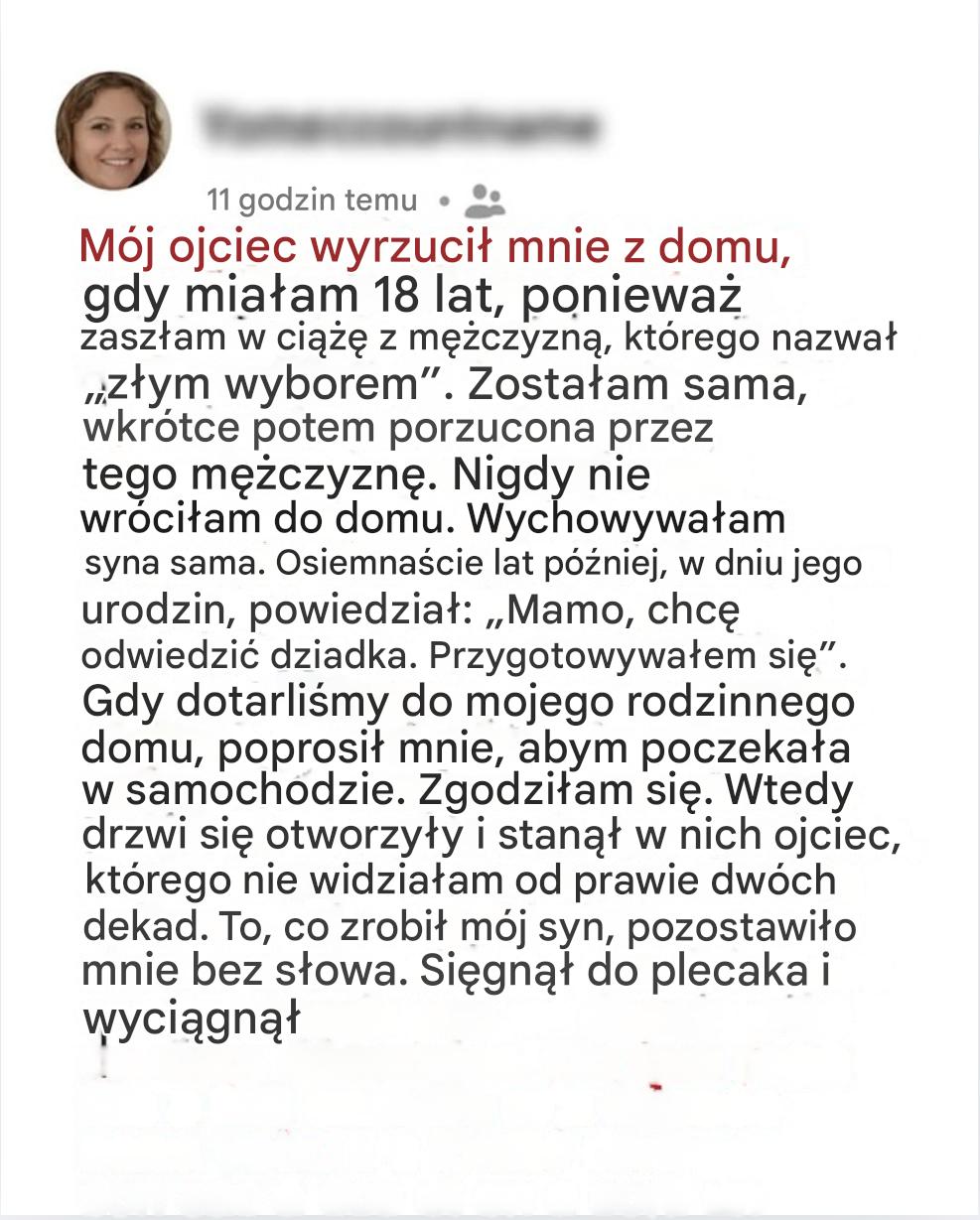 W wieku siedemnastu lat jeden moment prawdy kosztował mnie wszystko: dom, rodzinę i ostatni strzęp miłości mojego ojca. Osiemnaście lat później syn, którego sama wychowywałam, powrócił, by przerwać tę ciszę — słowami, których ani on, ani ja nie przewidzieliśmy.