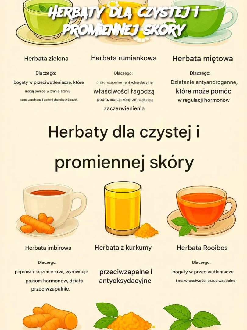 Herbata nie tylko koi — to potężny naturalny środek na uzyskanie czystszej, zdrowszej skóry. Oto lista herbat wraz ze składnikami, podstawowymi przepisami i tym, dlaczego są tak korzystne: