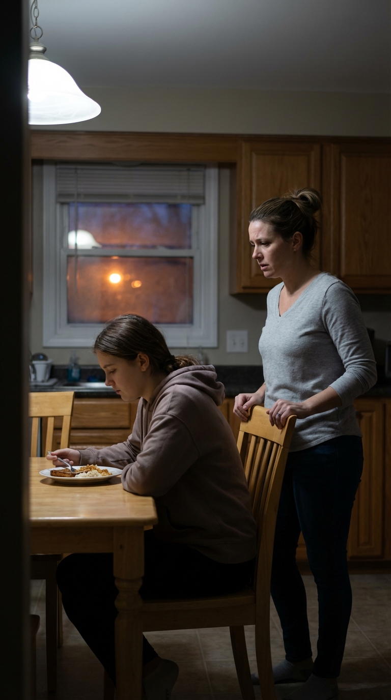 To było tuż po kolacji w chłodny czwartkowy wieczór w naszej kuchni podmiejskiej. Moja pasierbica siedziała cicho przy stole, popychając jedzenie wokół talerza.