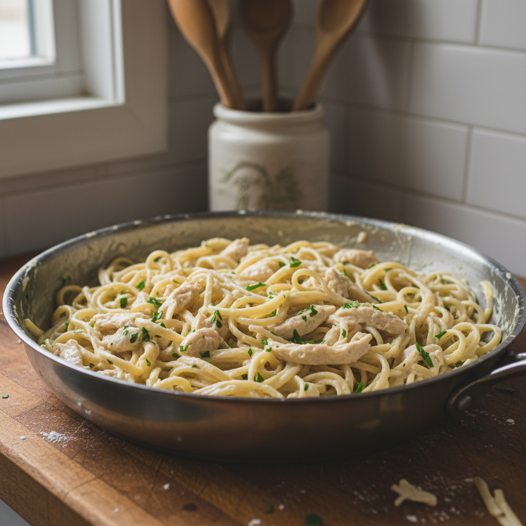 Lazy Creamy Chicken Alfredo Pasta