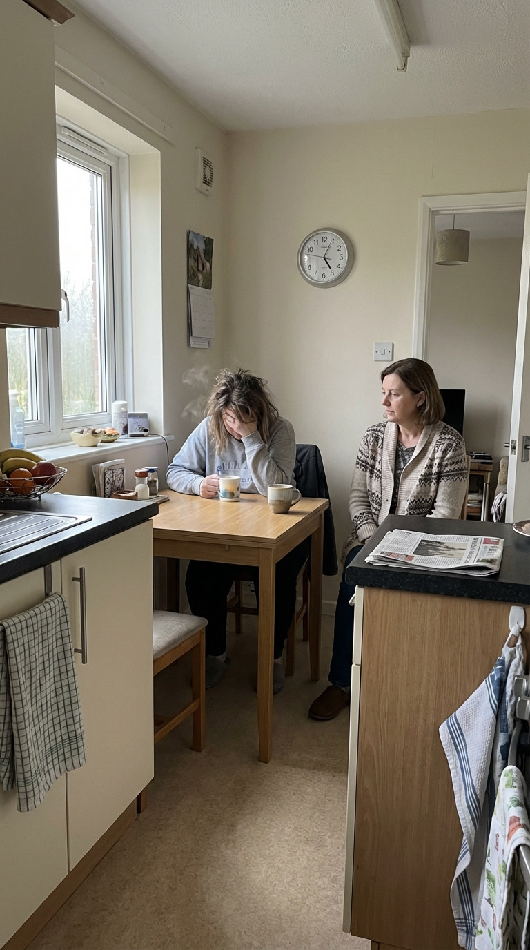 Kuchnia była cicha, zbyt cicha jak na sobotni poranek. Moja siostra siedziała naprzeciwko mnie, jej spojrzenie przymocowane do pary zwijające się od kubka po kawie.