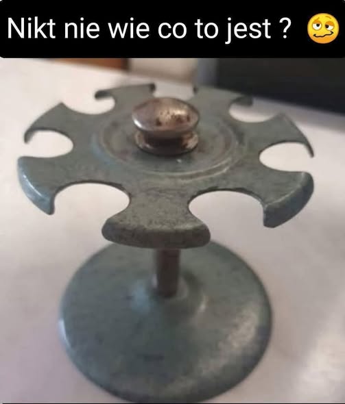 To zabytkowy, obrotowy stojak na stemple. Ten przedmiot, często wykonany z metalu, był powszechnie używany w biurach od lat 50. do 70. XX wieku do porządkowania i przechowywania wielu poduszek z tuszem.
