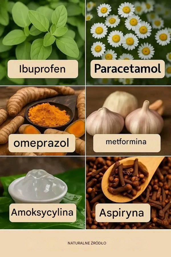 Ibuprofen i mięta pieprzowa: Ibuprofen jest jednym z najczęściej stosowanych środków przeciwzapalnych łagodzących ból i stany zapalne. Jednak rośliny takie jak mięta pieprzowa zawierają związki, które pomagają rozluźnić mięśnie i zmniejszyć stan zapalny, a także działają chłodząco i kojąco. Mięta pieprzowa może być stosowana w naparach lub sprayach z olejkami eterycznymi w celu złagodzenia bólów głowy, mięśni i drobnych dolegliwości, stanowiąc cenną naturalną alternatywę.