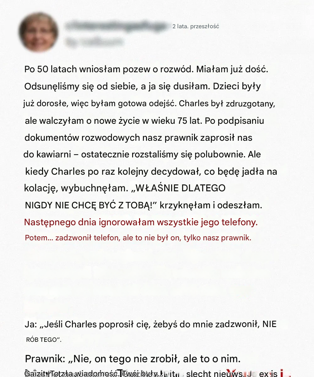 Chociaż Karol był smutny, uszanował jej życzenia. W głębi duszy wierzył, że miłość czasami oznacza odpuszczenie.