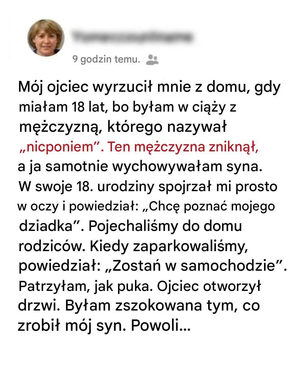Niektóre sceny pozostają wyryte w naszej pamięci na zawsze: spojrzenie, zdanie, cisza, czasem zwykłe trzaśnięcie drzwiami. Mając 18 lat, nie spodziewała się, że jej świat rozsypie się w ciągu kilku sekund. Jednak ta trudna chwila stała się początkiem nieoczekiwanego odrodzenia. A prawie dwadzieścia lat później to jej syn, teraz młody dorosły, powrócił na ten sam próg, niosąc przesłanie, które może uleczyć o wiele więcej niż tylko zranioną przeszłość.