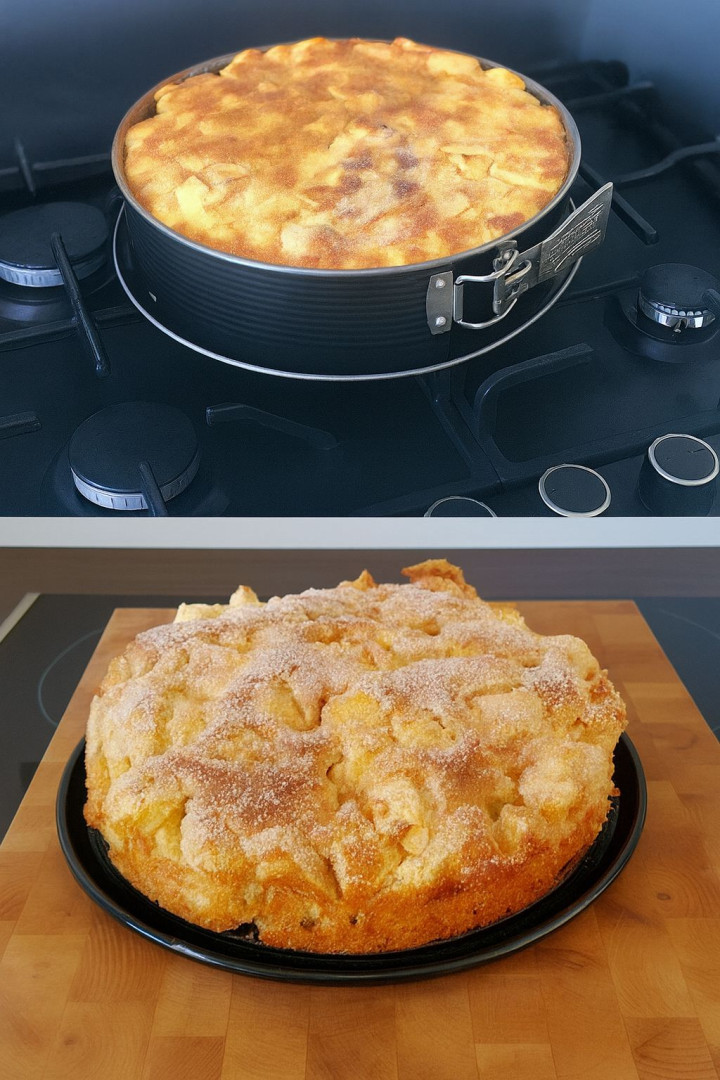 2. Teraz pieczemy w dobrze nagrzanym piekarniku w temperaturze 180°C na dolnej półce przez około 1 godzinę. Po 45 minutach posmaruj dużą ilością masła i posyp dużą ilością cukru lub mieszanki cukru z cynamonem.