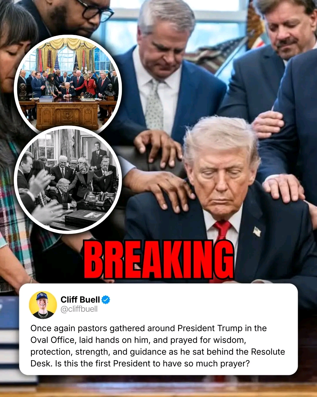 Today, a striking scene unfolded inside the Oval Office. President Donald Trump sat behind the Resolute Desk while a group of pastors and faith leaders stood around him, reaching out, laying hands on him, and praying aloud. The reports and video descriptions I found say the prayers asked for wisdom, strength, protection, grace, and guidance for the decisions in front …