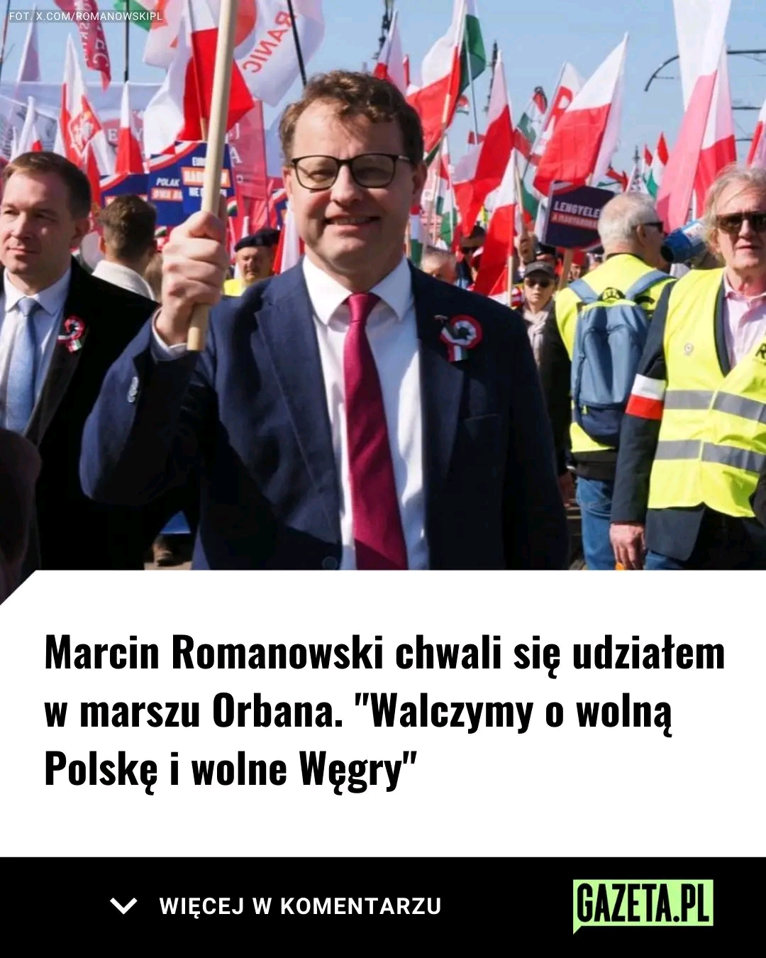 W organizowanym przez środowisko Viktora Orbana “Marszu Pokoju” wzięli udział przedstawiciele samozwańczego Ruchu Ochrony Granic na czele z Robertem Bąkiewiczem, a także poszukiwany przez polską prokuraturę Marcin Romanowski. Były wiceminister twierdzi, że na Węgrzech i w Polsce trwają “zmagania o wolność”.