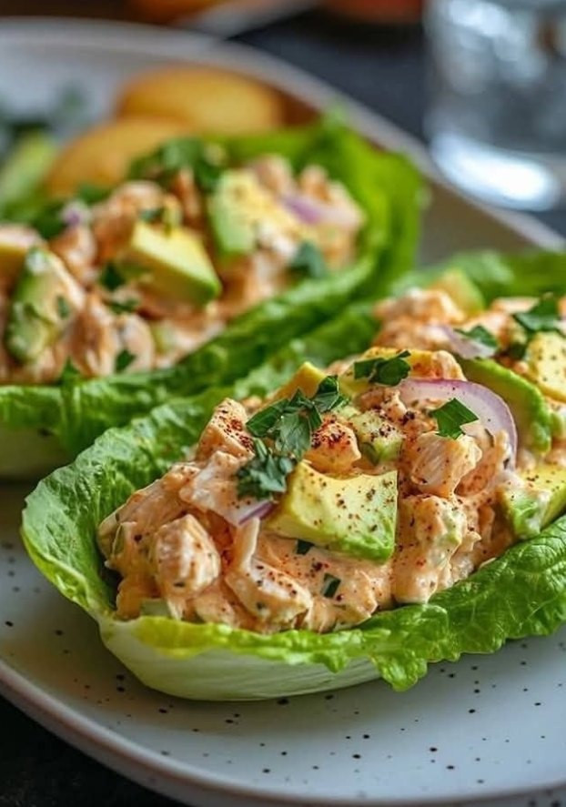 Sałatka z kurczakiem i awokado w roladkach z sałatySkładniki▢2 szklanki gotowanego kurczaka, rozdrobnionego (używam rożna)▢¼ szklanki zwykłego jogurtu greckiegoPełny przepis w pierwszym komentarzu