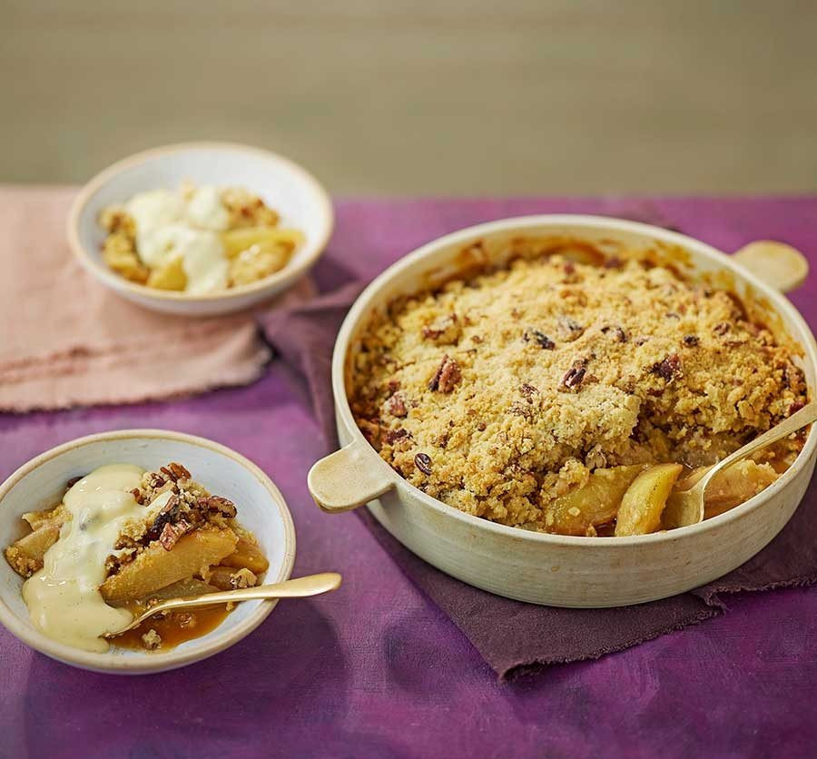🍐🥧 Gruszki, Orzechy Pecan i Karmelowy Crumble 🍯🌰 Czy jest coś lepszego niż ciepły deser w chłodne dni? 🌧️☕ Oto przepis na nasz słodki hit: Pear, Pecan & Caramel Crumble! Idealny do kawy lub herbaty. 😍 Składniki: 🍐 4 dojrzałe gruszki 🌰 100 g orzechów pecan 🍯 100 g cukru trzcinowego (do karmelu) 🧈 100 g masła + 50 g do crumble 🌾 150 g mąki pszennej 🥄 1 łyżeczka cynamonu 🥛 2 łyżki śmietanki 30% (opcjonalnie do karmelu) Przygotowanie: 1️⃣ Gruszki obierz, usuń gniazda nasienne i p… See more